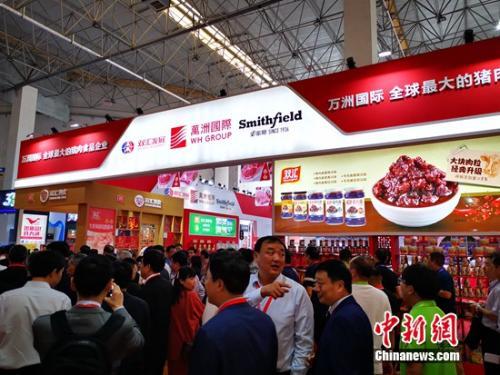 5月16日上午,双汇展区前聚集了众多前来参观的人。